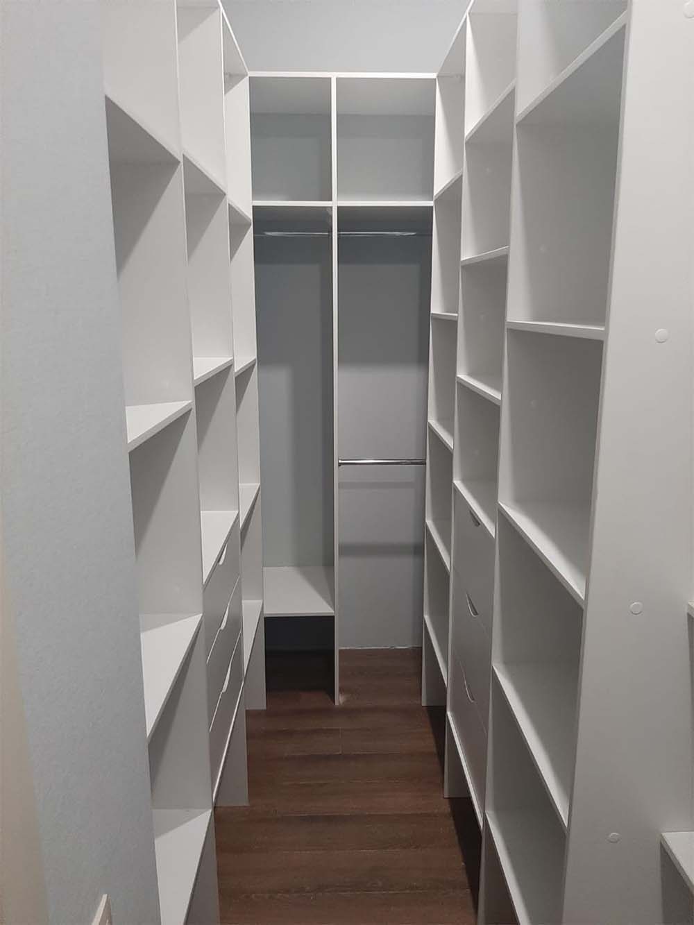 Дизайн гардеробной “Белоснежный Рай” разработан таким образом, чтобы максимально эффективно использовать каждый сантиметр пространства. С множеством полок различных размеров, вы с легкостью разместите свои свитера, футболки, белье и другие предметы гардероба. Упорядоченное хранение одежды становится не только удобным, но и приятным занятием.