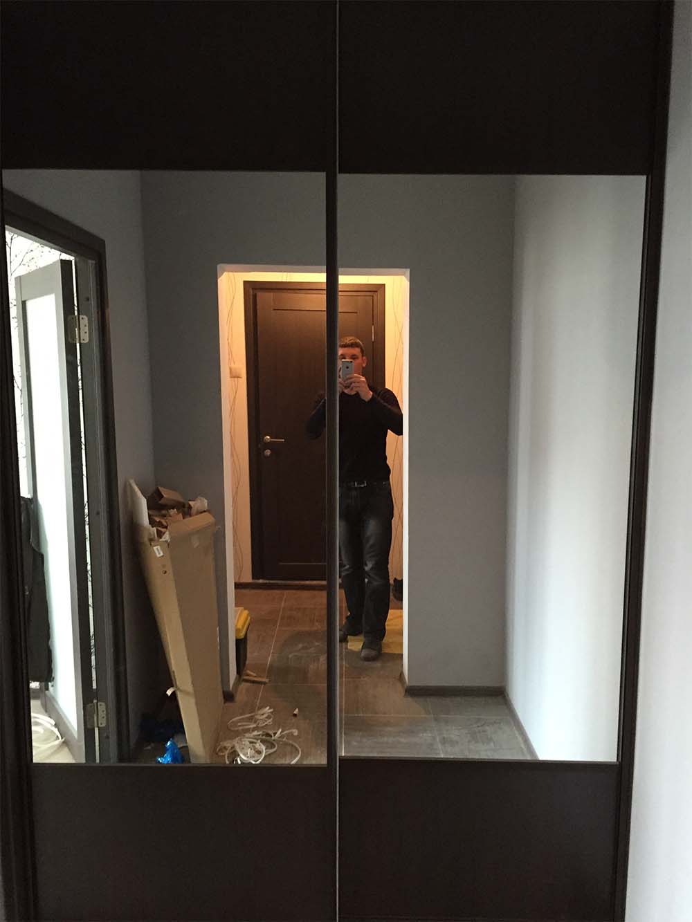 Две просторные раздвижные двери, декорированные зеркальными панелями. Зеркала также позволяют вам оценить ваш образ в полный рост, убедившись, что вы выглядите безупречно.