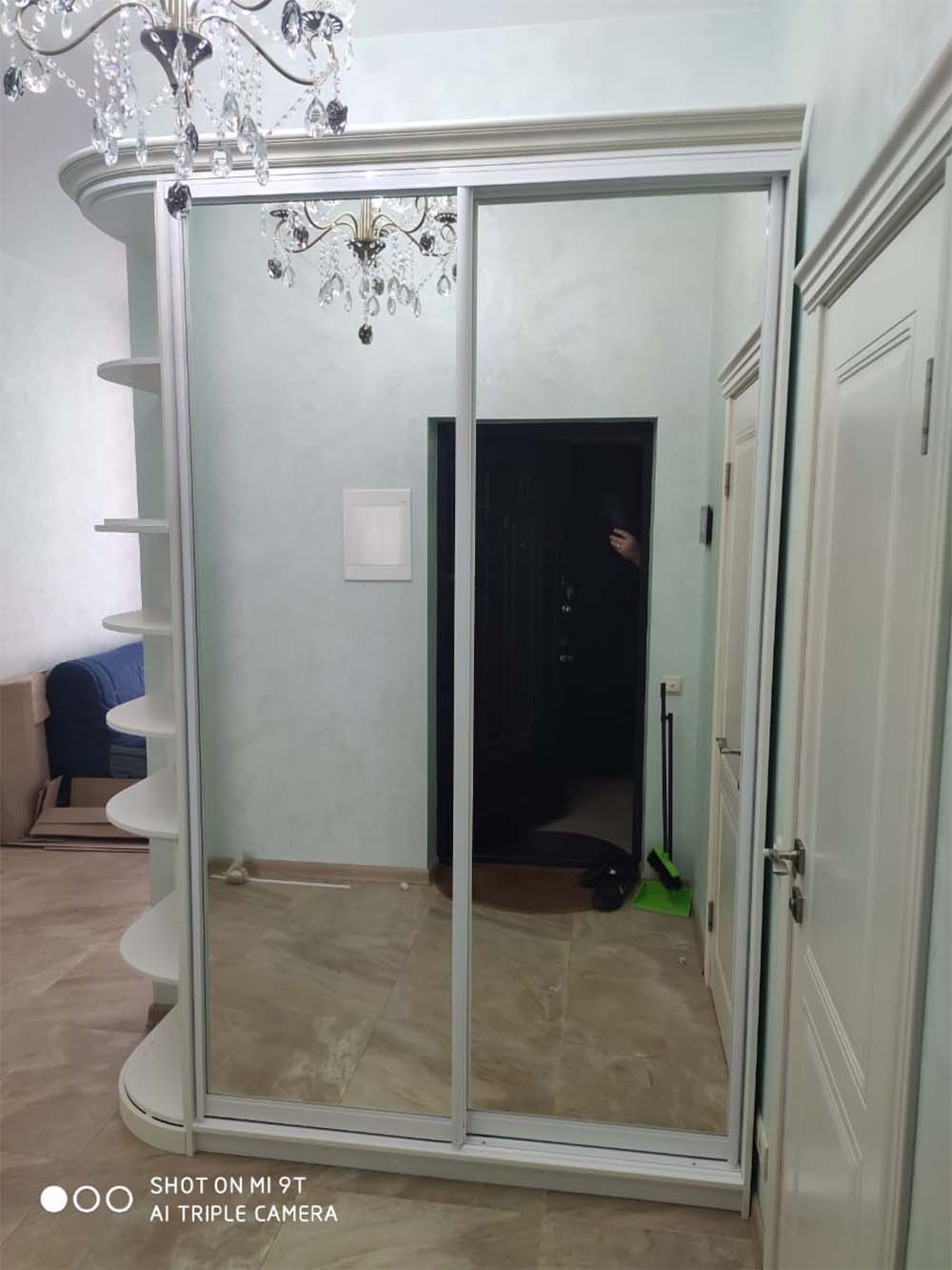 Шкаф-купе SHK34 — это универсальная мебель, которая гармонично впишется в любое помещение. Изготовленный из качественного материала корпуса, он гарантирует долговечность и надежность. Данная модель была выполнена по индивидуальным размерам заказчика, и наш клиент остался полностью доволен. С двумя фасадами из зеркал, этот шкаф не только функционален, но и визуально расширяет пространство вашей комнаты.