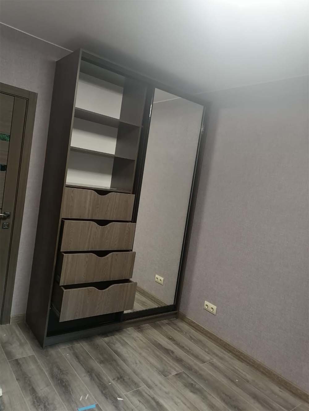 Простой, но интересный дизайн шкафа, прекрасно вписался в интерьер. Данная модель была изготовлена по индивидуальному проекту заказчика и шкаф прекрасно вписался в интерьер квартиры.