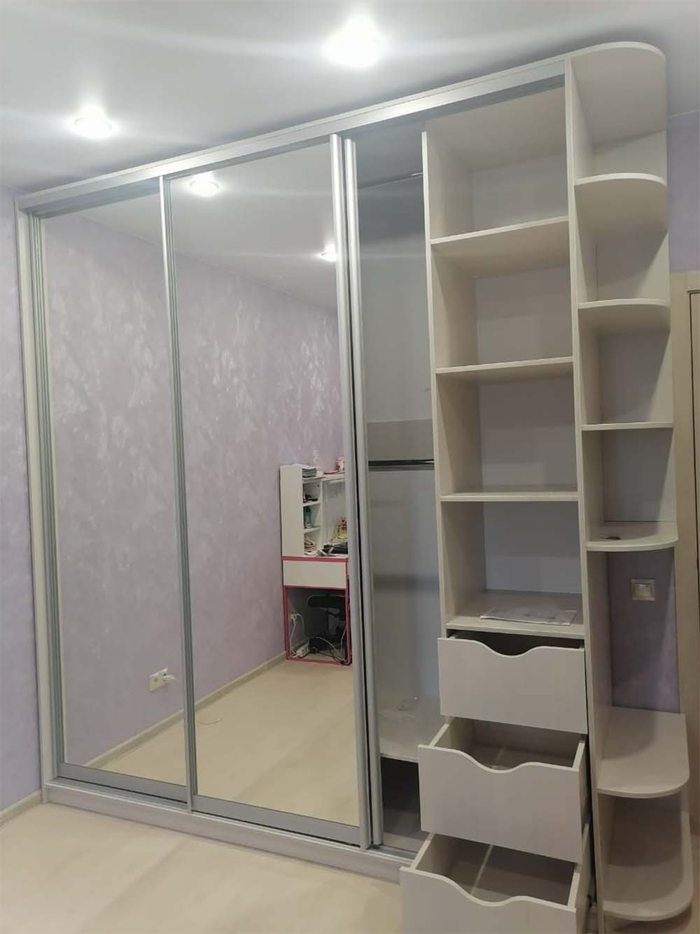 Шкаф-купе в детской комнате очень функциональная мебель, которая впишется в любой дизайн и будет служить долгое время. Данная модель была изготовлена по индивидуальному размеру и клиент остался доволен.