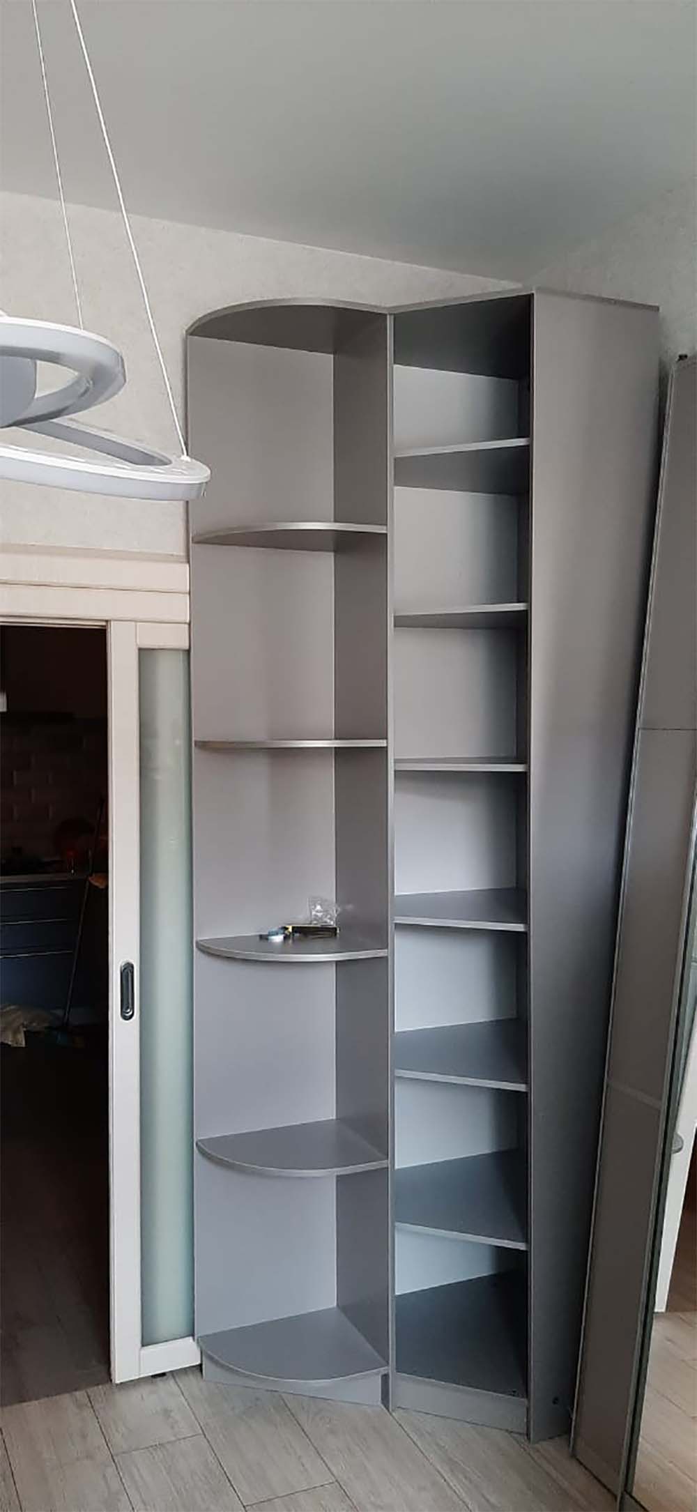 Угловой шкаф с небольшой зеркальной дверкой был изготовлен из высококачественного материала корпуса и отлично вписался в спальное помещение. Его современный дизайн, функциональность и надежность делают его незаменимым элементом для организации пространства. Шкаф не только экономит место, но и добавляет стиль вашему интерьеру.