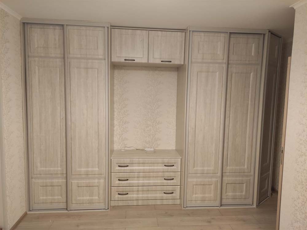 Гостиная комната должна быть функциональна и в тоже время симпатична для гостей. Встроенный шкаф-купе с четырьмя фасадами VSHK1 изготовлен из высококачественного материала корпуса, что обеспечивает долговечность и надежность. Данная модель была выполнена точно в срок и по индивидуальному проекту заказчика, что позволяет ей идеально вписаться в любой интерьер.