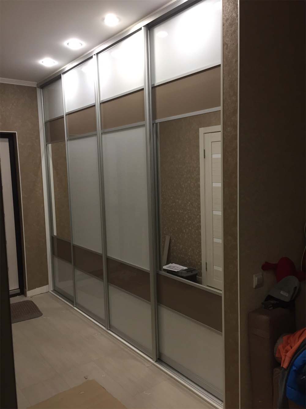 Функциональный встроенный шкаф купе прекрасно вписался в прихожую комнату. Хозяин остался очень довольным, ведь пустое ненужное пространство, было заполнено с умом.