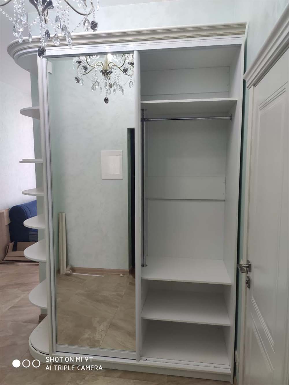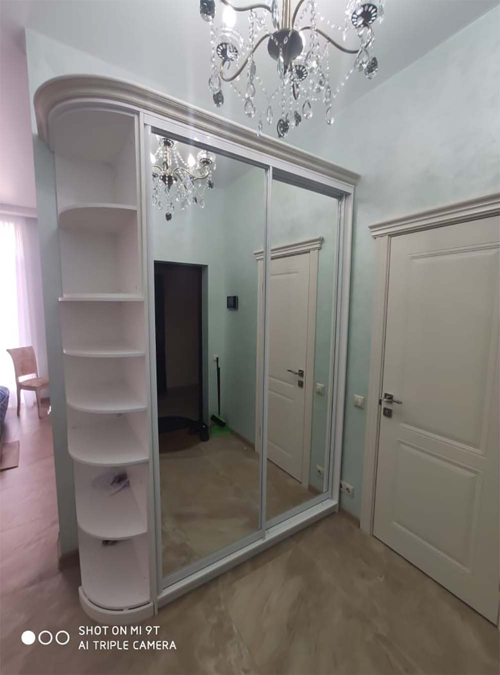 Шкаф-купе SHK34 — это универсальная мебель, которая гармонично впишется в любое помещение. Изготовленный из качественного материала корпуса, он гарантирует долговечность и надежность. Данная модель была выполнена по индивидуальным размерам заказчика, и наш клиент остался полностью доволен. С двумя фасадами из зеркал, этот шкаф не только функционален, но и визуально расширяет пространство вашей комнаты.