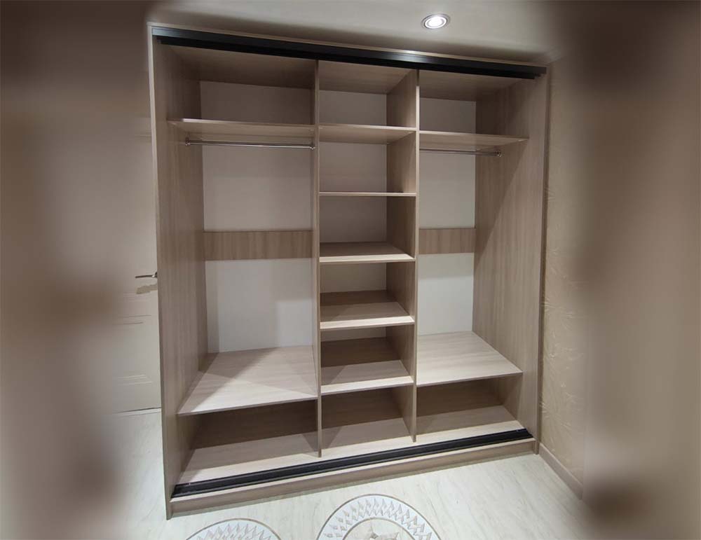 комбинированными фасадами, выполненный из ЛДСП цвета Ясень шимо светлый. Двери-купе с ассиметричным профилем Premial Бронза матовая и наполнением зеркала Серебро. А вставки из зеркал Сатинато бронза придают ему неповторимость. Этот шкаф-купе станет не только практичным, но и стильным элементом вашего интерьера, обеспечивая достаточное пространство для хранения вещей.