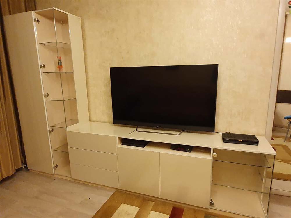 Эта гостиная была создана с вниманием к деталям, что делает ее не только красивой, но и практичной. Хозяева остались очень довольны своим выбором. Создайте уют и стиль в вашем доме с шкафом стенкой SHS3!